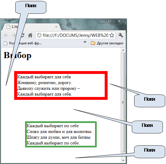 Поля — це відстань між елементами та між елементом і межами вікна.