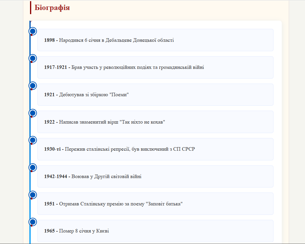 - Детальну біографію поета з акцентом на його вплив на українську літературу