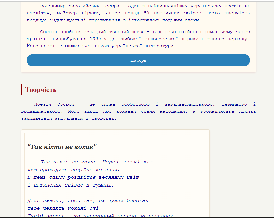 - Сторінка передає емоційну силу поезії Сосюри, її зв'язок з історичними подіями та внесок у українську літературу.