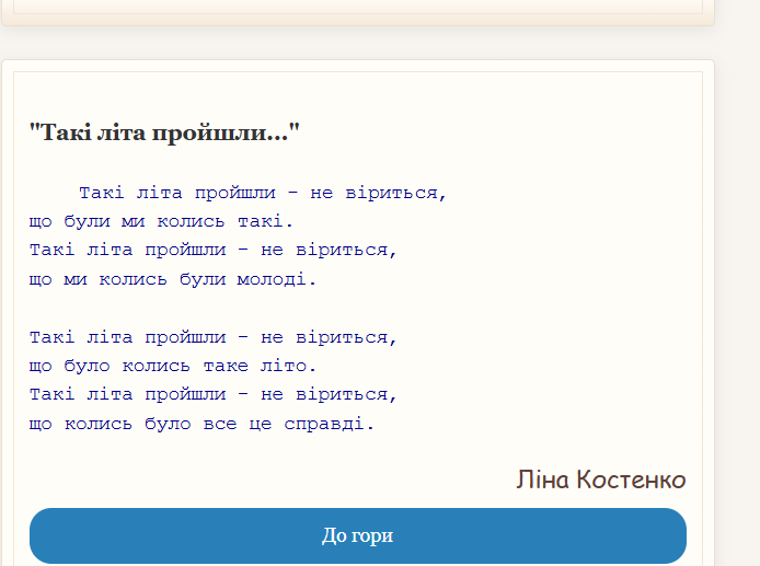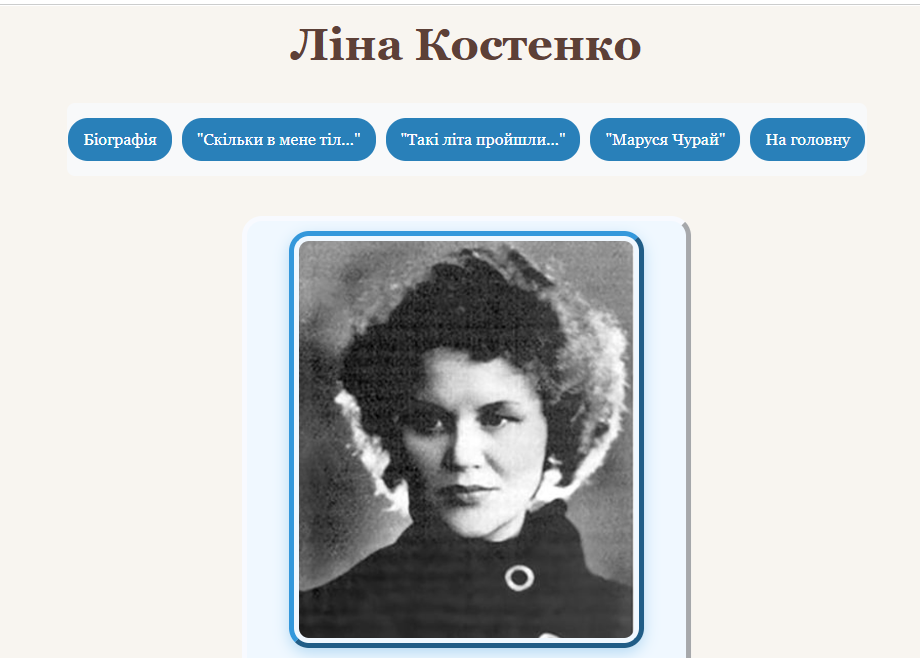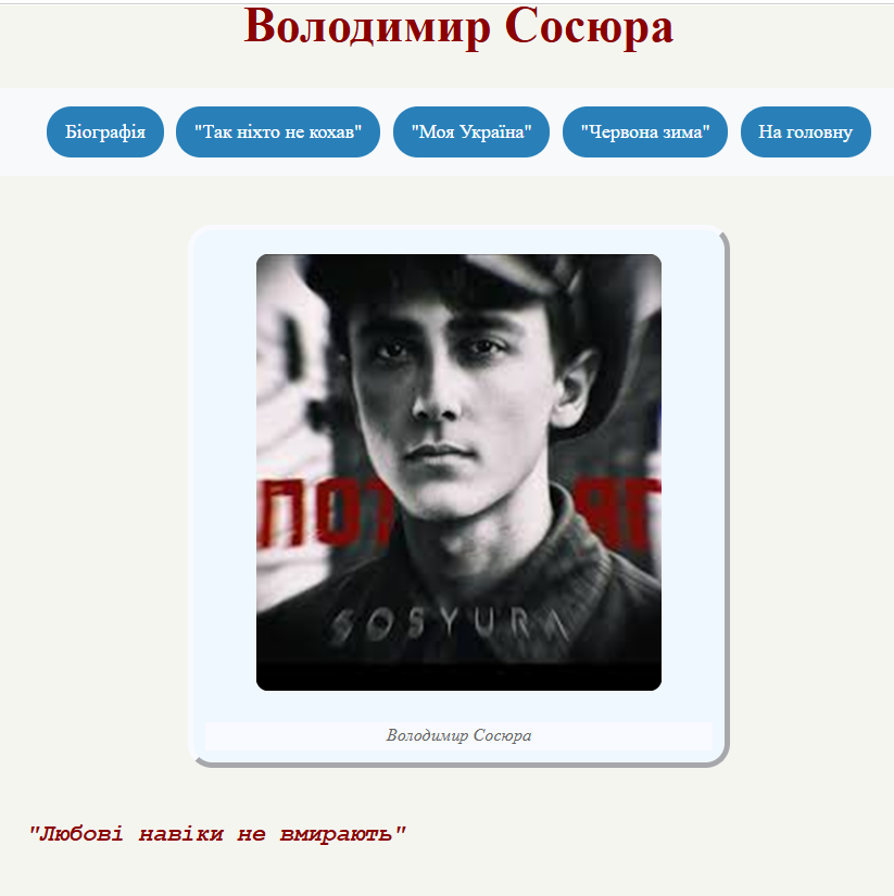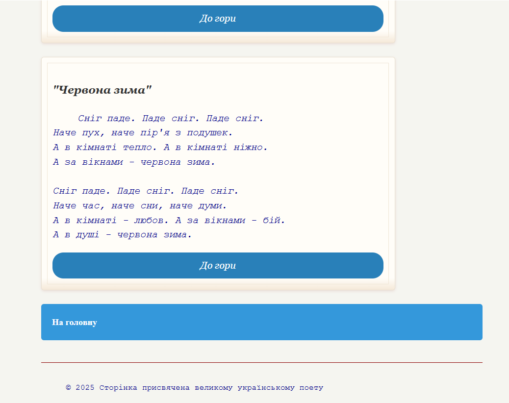 Візьміть свій файл з третьої практичної роботи Var_№_UkrPoets.html, створіть файл style.css і підключіть його до сторінки. Задайте стилі, щоб отримати оформлення, подібне до зразка.