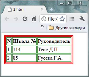 Окремо задано обрамлення всієї таблиці і межі комірок.