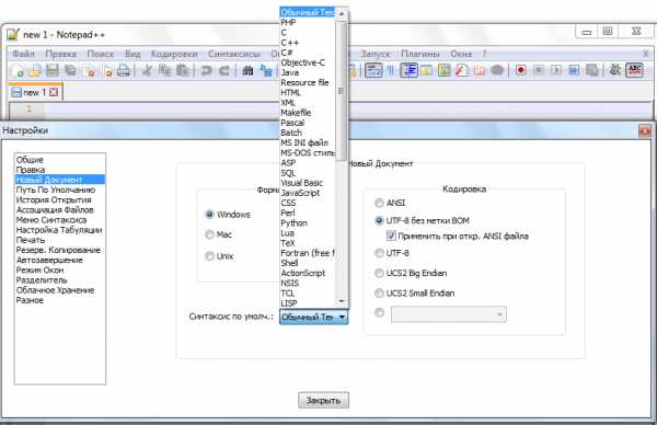 У вкладці «Новий документ» вибираємо формат і кодування за замовчуванням. Формат налаштовуємо за назвою своєї операційної системи.