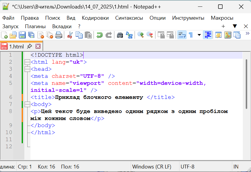 При перегляді браузером цього файлу форматування блокнота зберігається:
