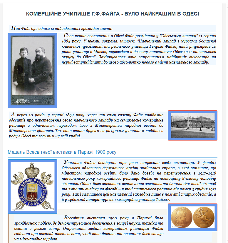 Ця нагорода стала свідченням того, що Одеське комерційне училище Г.Ф. Файга входило до числа найкращих навчальних закладів свого часу.