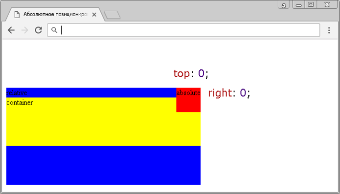 У результаті наш елемент розміщений у верхньому правому куті свого предка з відносним позиціонуванням.