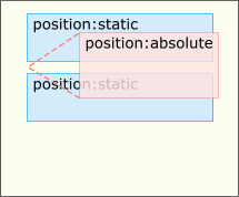 Якщо ви не вказуєте вертикальне положення елемента з абсолютним позиціонуванням (top або bottom), або горизонтальне положення (left або right), браузер залишить елемент у тому самому місці сторінки, де він знаходиться у звичайному потоці (елемент буде розміщений поверх вмісту, якщо він є).