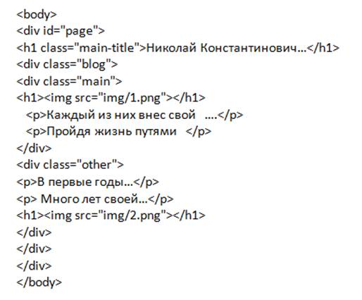 І блок page вкладемо два блоки: main-title, ¤кий містить заголовок h1, і блок blog.