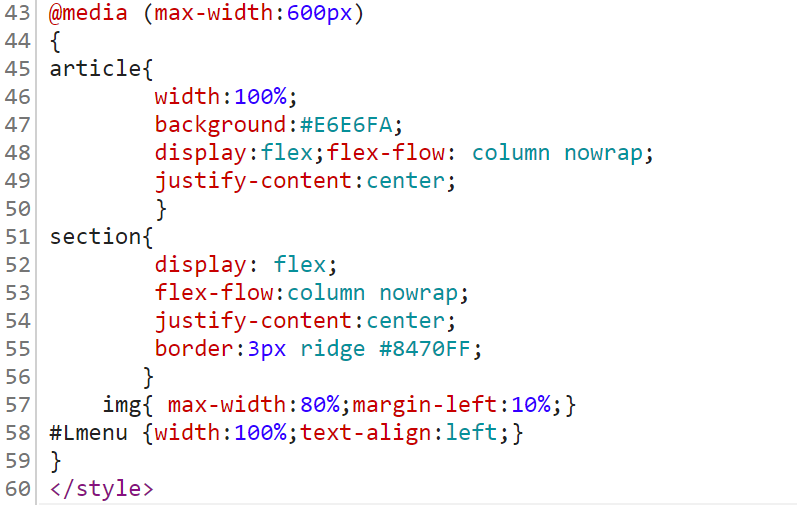 Створимо запит, який при ширині екрану меншій ніж 600 пікселів виконує такі зміни: