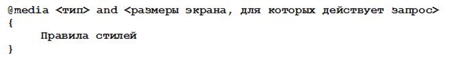 Медіа-запити розміщуються в таблиці стилів і мають таку структуру: