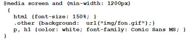 У заголовку після @media записано умову, за якої застосовується це форматування — ширина екрану (screen) більша або дорівнює 1200 пікселів.