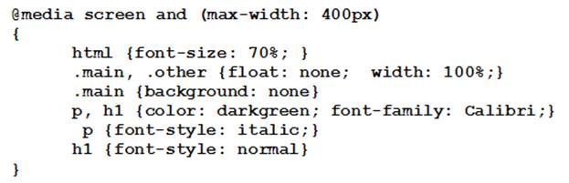 Створимо запит, який при ширині екрану менше ніж 400 пікселів виконує такі зміни: