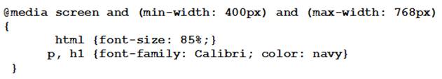 У заголовку після @media зазначено умову, за якої застосовується це форматування: ширина від 400 до 768 пікселів.