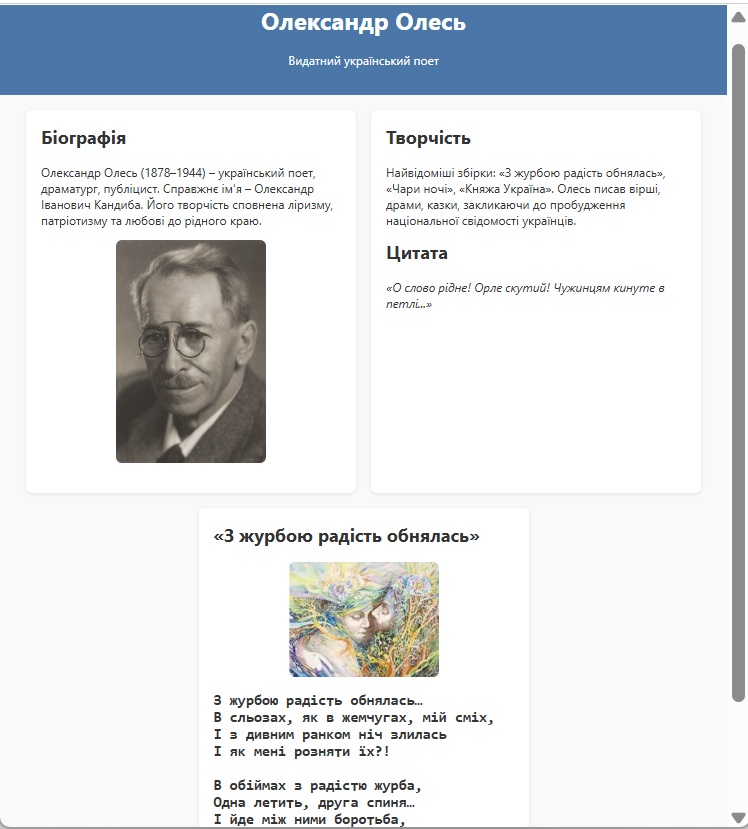 - Колір тексту у всіх блоках — чорний.