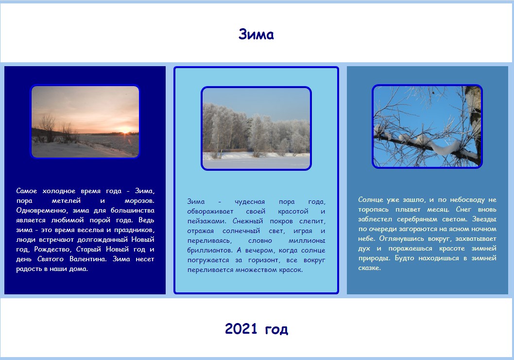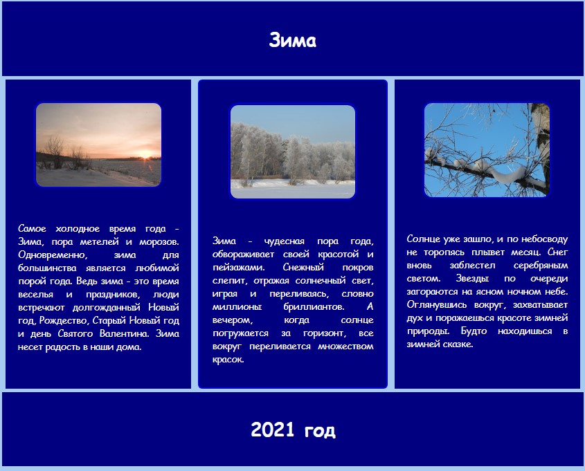 - Колір фону у всіх блоках: navy.