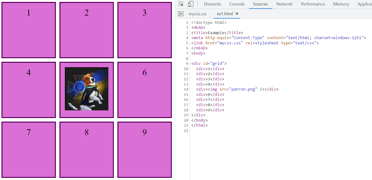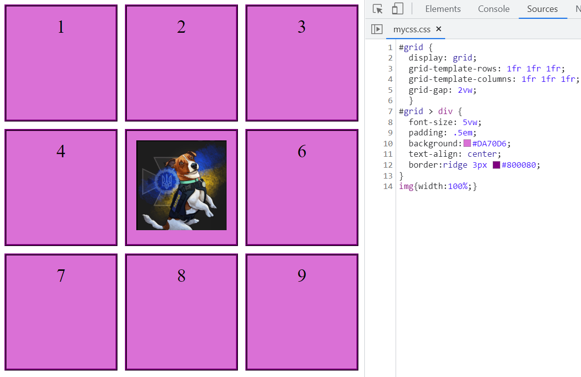 Але фактично це не буде повноцінним грідом, поки ми не застосуємо деякий CSS для нього. Ось код, який його створює:
