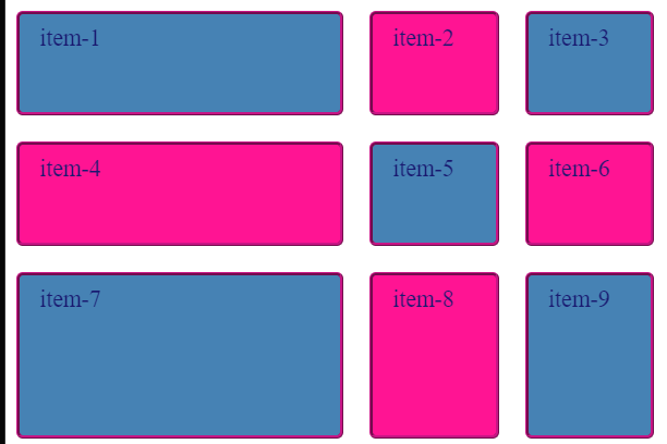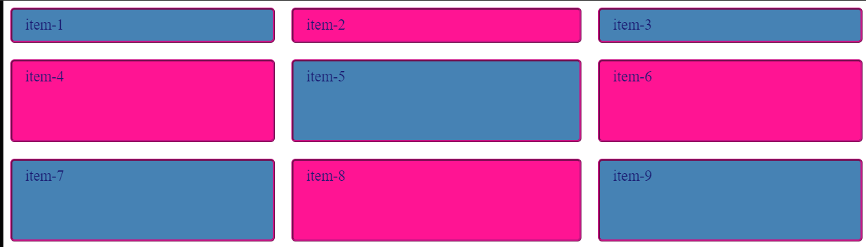 .o-grid { grid-auto-flow: row; Ключове слово, що вказує розміщувати елементи, заповнюючи по черзі кожен рядок і додаючи нові рядки за потреби. Це значення використовується за замовчуванням.