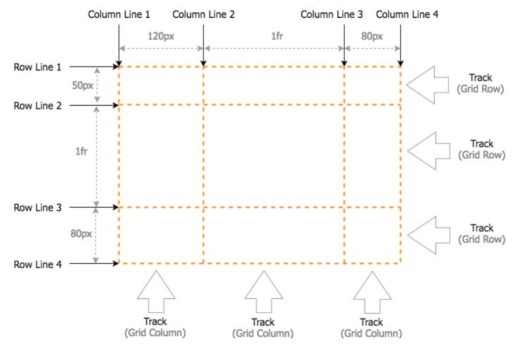 Grid-лінії — це горизонтальні та вертикальні лінії в гріді. Кожен рядок і колонка мають grid-лінію з кожного свого боку.