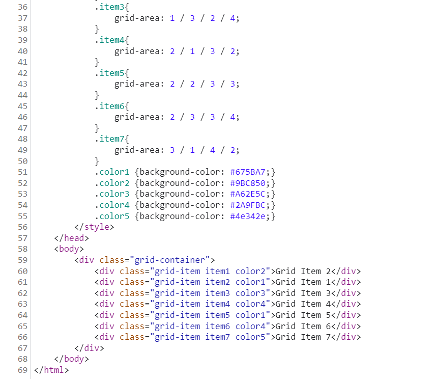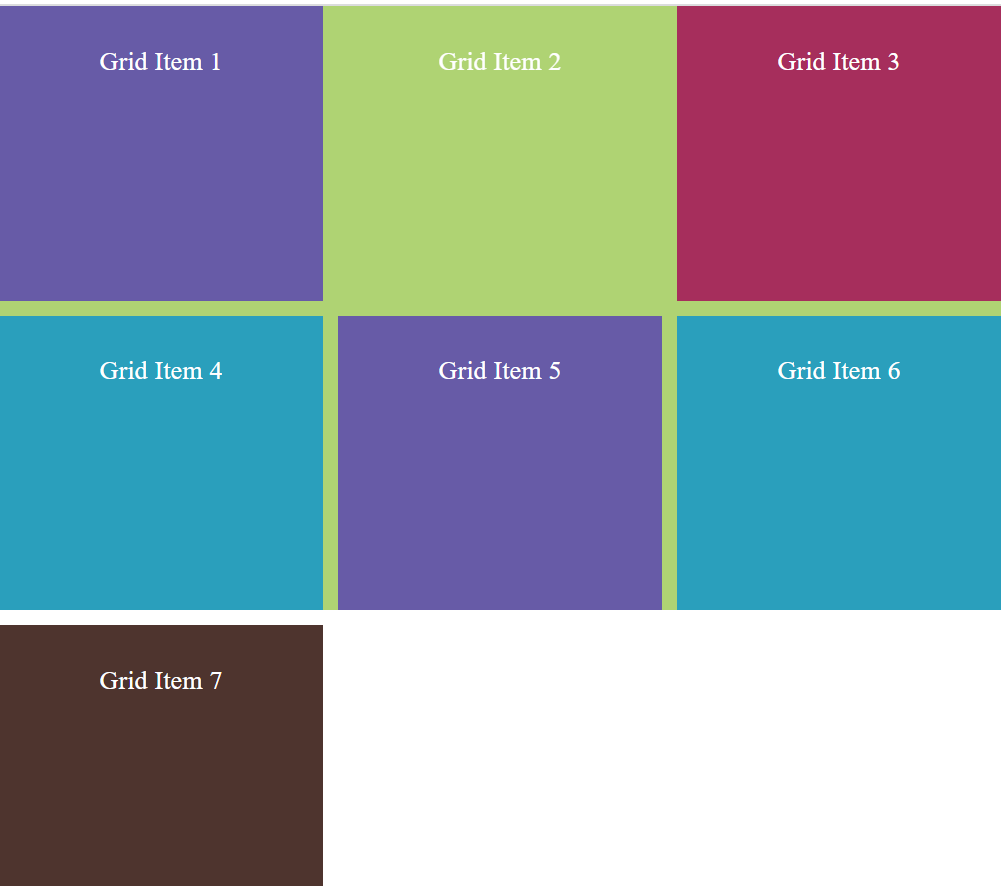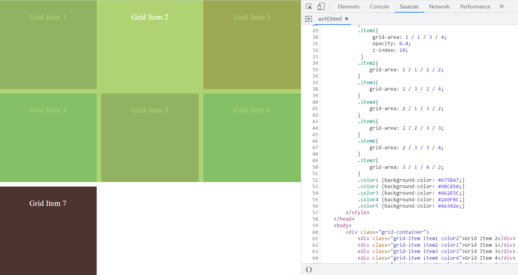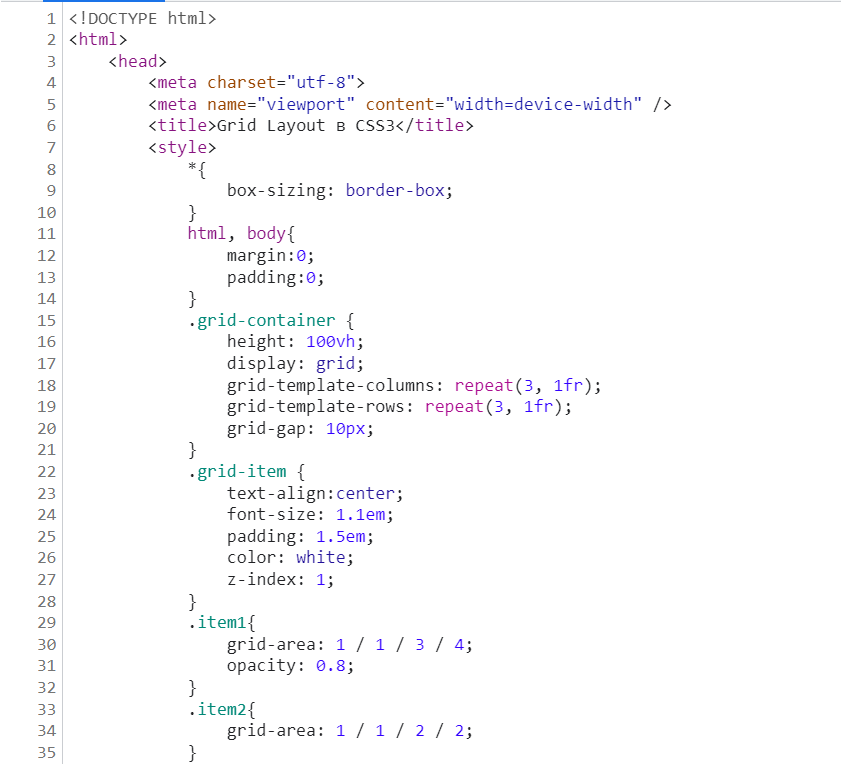 І за замовчуванням кожен елемент у гріді позиціонується в одну клітинку послідовно. Але ми можемо більш точно налаштувати розташування елемента у гріді за допомогою низки властивостей: