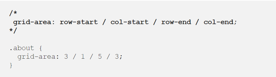 Можна сказати, що властивість grid-area об’єднує властивості grid-column і grid-row, дозволяючи скоротити їх запис: