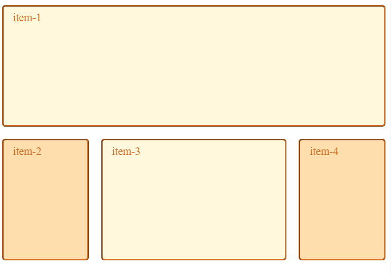 Перший грід елемент починається з рядкової лінії 1 і колонкової лінії 1, а закінчується на рядковій лінії 1 і колонковій лінії 4. Замість 4 можна написати -1.